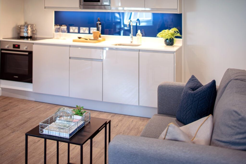 Find My StayEach One Bedroom Apartment offers the perfect blend of space and sophistication. Featuring a separate bedroom with a comfortable double bed, a modern bathroom, and a stylish open-plan living area, these apartments are designed for both relaxation and productivity. Enjoy the freedom of your own fully equipped kitchen, complete with premium appliances, alongside a bright and contemporary living space ideal for unwinding or entertaining. Perfect for business or leisure stays, these combine hotel-style comfort with all the convenience of home.